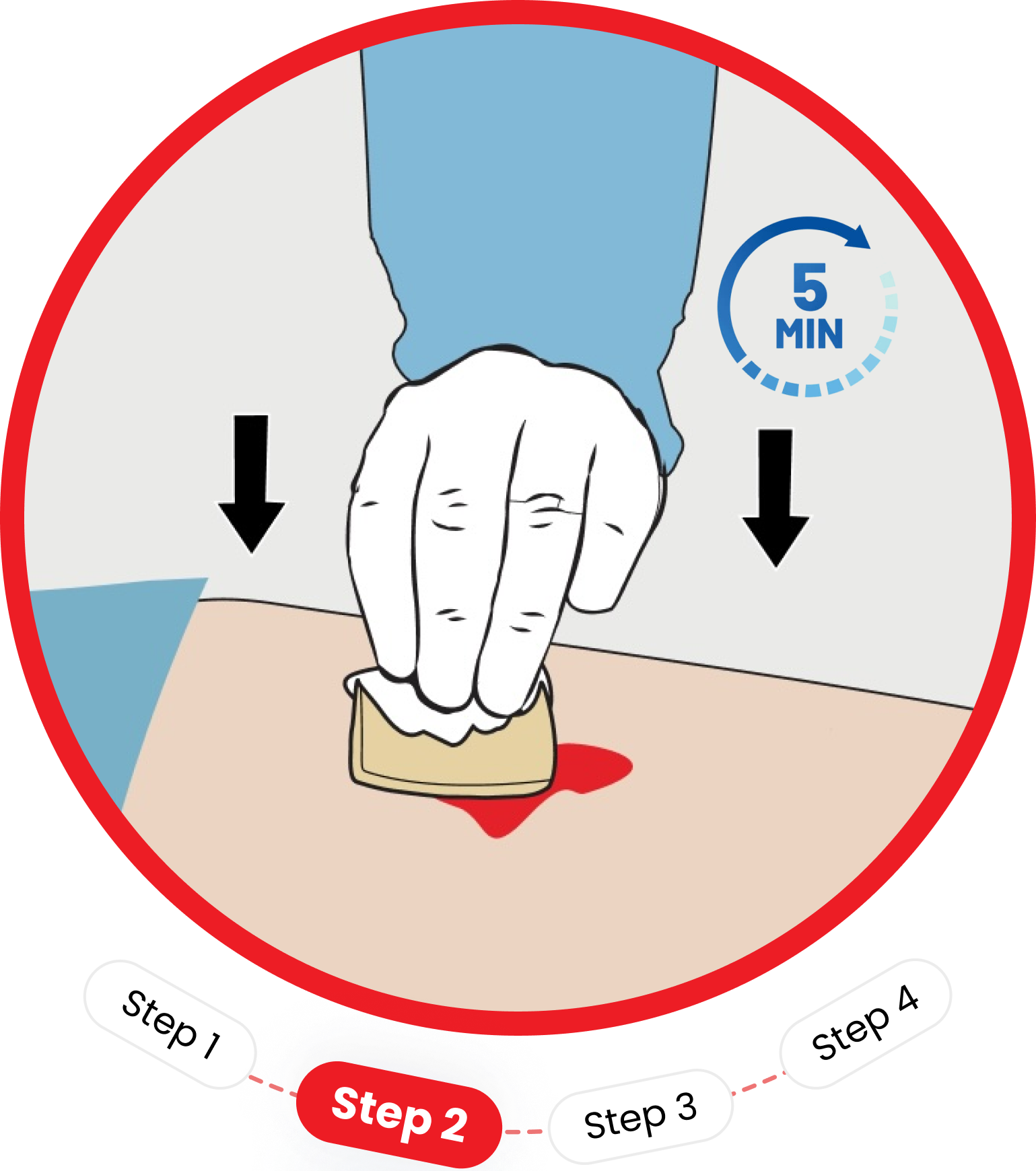 Keep the occlusive compression for 10 min till the time Axiostat® adheres to the site and no bleeding is observed.